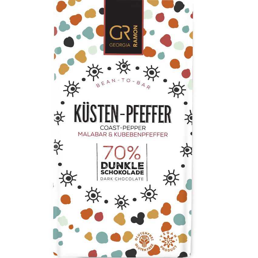 Dunkle Schokolade mit 70% Kakaoanteil und veredelt mit Pfeffer